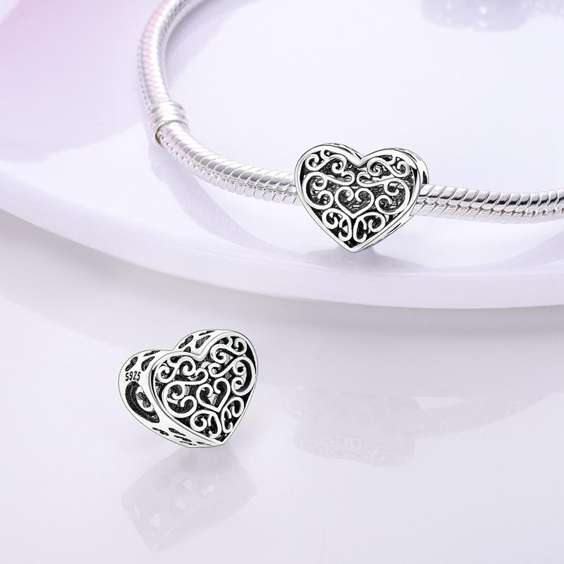 New Copper Charm Beads Family Sister Love Heart Beads Fit Original Bracelets Diy Pendant Woman Jewelry Gift