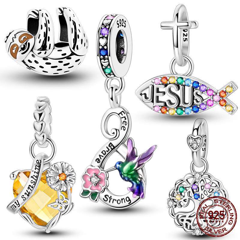 Copper Sunflower Heart Pendant Charms Relaxed Sloth Beads Fit Original Bracelet Diy Fine Jewelry Woman Gift