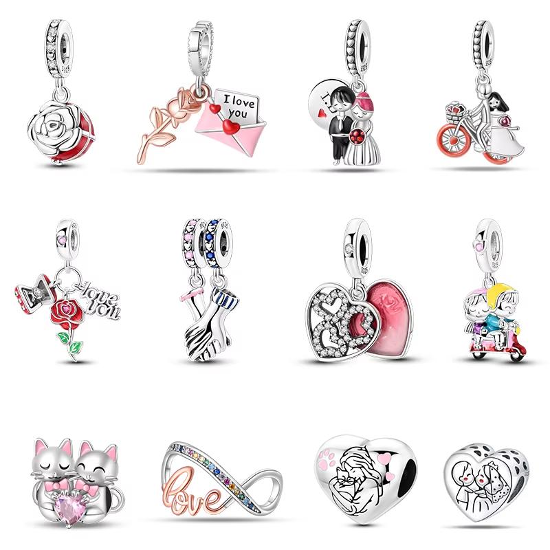 Copper Romantic Couple Rose Valentine'S Day Charms Beads Fit Qikaola Original Bracelets Fine Diy Jewelry Gifts