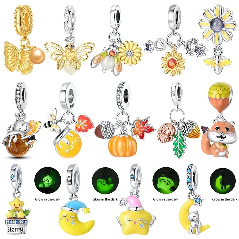 Nightglow Star Moon Pendants Pinecone Beads Fit Bracelets Copper Beautiful Flowers Butterfly Charms Diy Jewelry