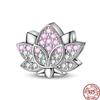 New Original Copper Pave Zirconia Pink Lotus Diy Beads Charms Fit Pan 3Mm Bracelets Madam Jewelry Gift