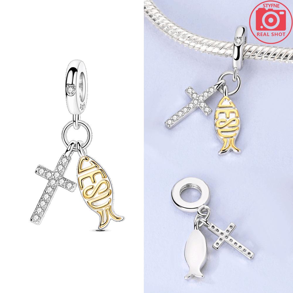 Charms Plata Creative Crucifix And Fish Pendants Beads Fit Original Bracelets Charms For Women Jewelry Diy Making Gifts