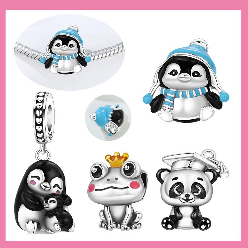 Copper Crown Frog Bear Penguin Graduation Hat Chain Charms Beads Pendant For Original Bracelet Woman Girl Jewelry