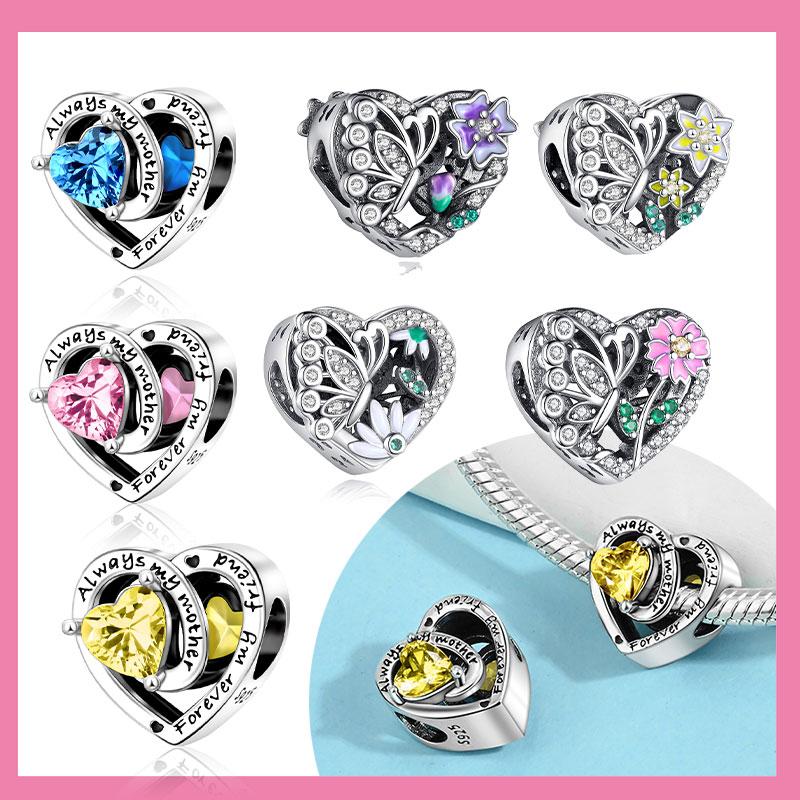 Original Copper Blue Heart Zircon Twelve Zodiac Signs Months Flowers Charms Beads Fit Bracelet Women Jewelry Diy Fine Gift