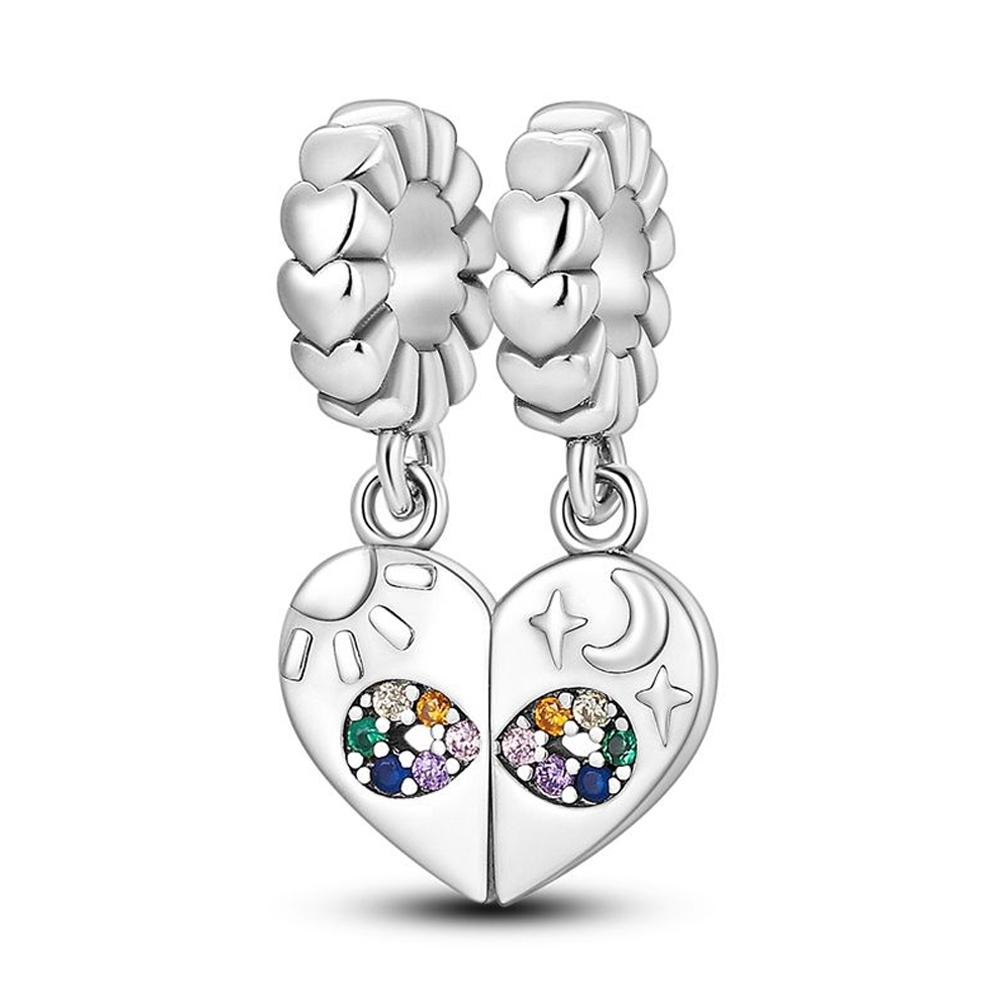 Charms Plata Colored Zircon Moon Star Heart Pendants Fit Original Bracelets Charms For Women Jewelry Diy Making Gifts