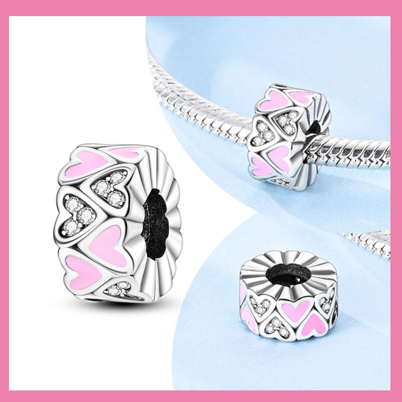 Pink Heart Charms Copper Galaxy Beads Bracelet Making Supplies Diy Handmade Jewelry Birthday Gift For Girls