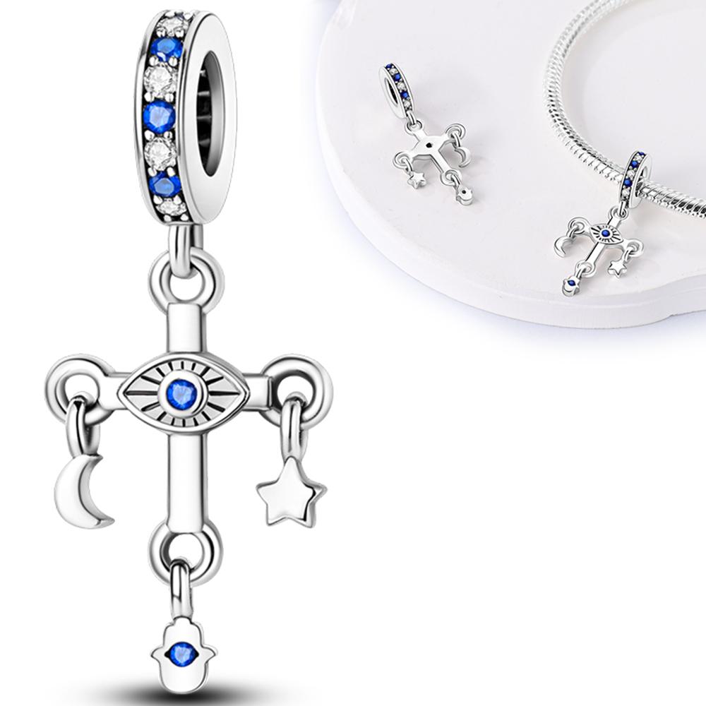 Charms Plata Blue Moon Star Eyes Crucifix Pendants Fit Original Bracelets Charms For Women Jewelry Diy Making Gifts