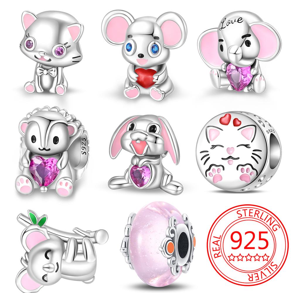 Copper Pink Elephant Animal Charm Beads Fit Charm Copper Original Bracelet For Women Jewelry Making