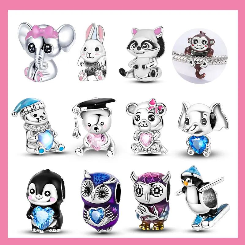 Copper Bear Elephant Penguin Owl Rabbit Monkey Charm Fit Original Bracelet Fit Diy Jewelry Accessories Beads