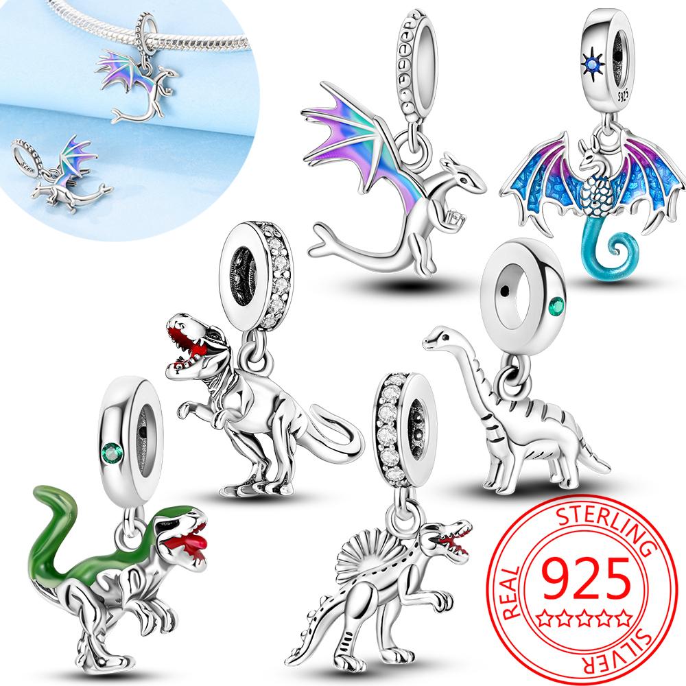 Copper Jurassic T-Rex Flying Dragon Charm Pendant Beads Fit Original Bracelet For Women Jewelry Making