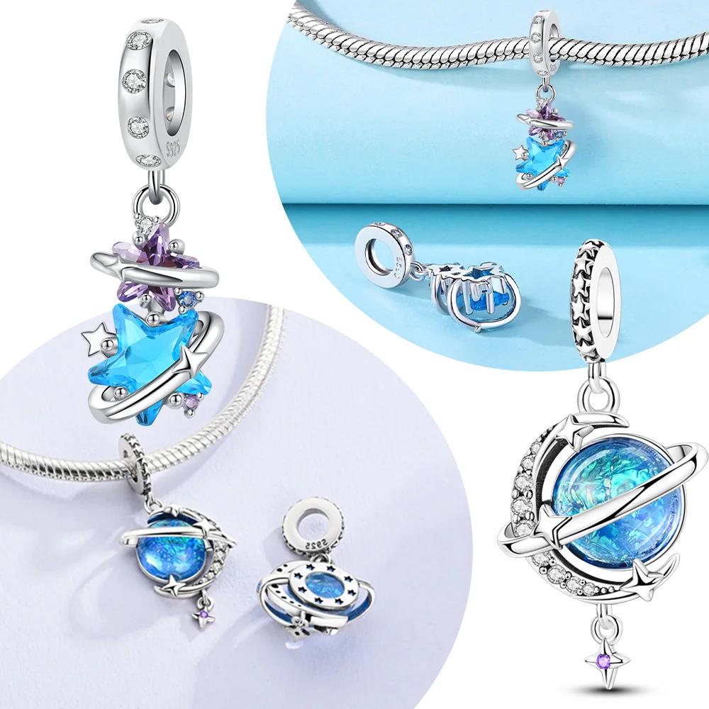 Blue Moon And Stars Charms Original Copper Beads Charms Fit Bracelet Diy Jewelry Making Luxury Material Necklace