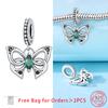 Butterfly Series Purple Zircon Butterfly Pink Butterfly Copper Charms Bead Pendant Fit Diy Bracelet Women Fine Gift Jewelry