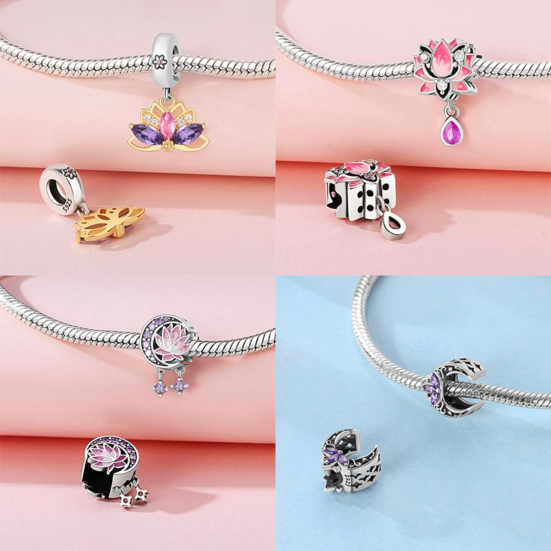 Original Copper Charms Lotus Flower Beads Fit Bracelet Necklace Accessories Women Jewelry Making Fine Jewelry Gift