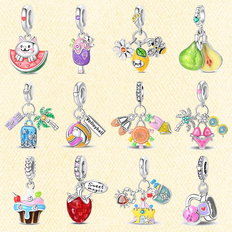 Copper Fashion Holiday Beach Watermelon Green Pear Charms Beads For 3Mm Bracelet Diy Fine Jewelry Gift Making