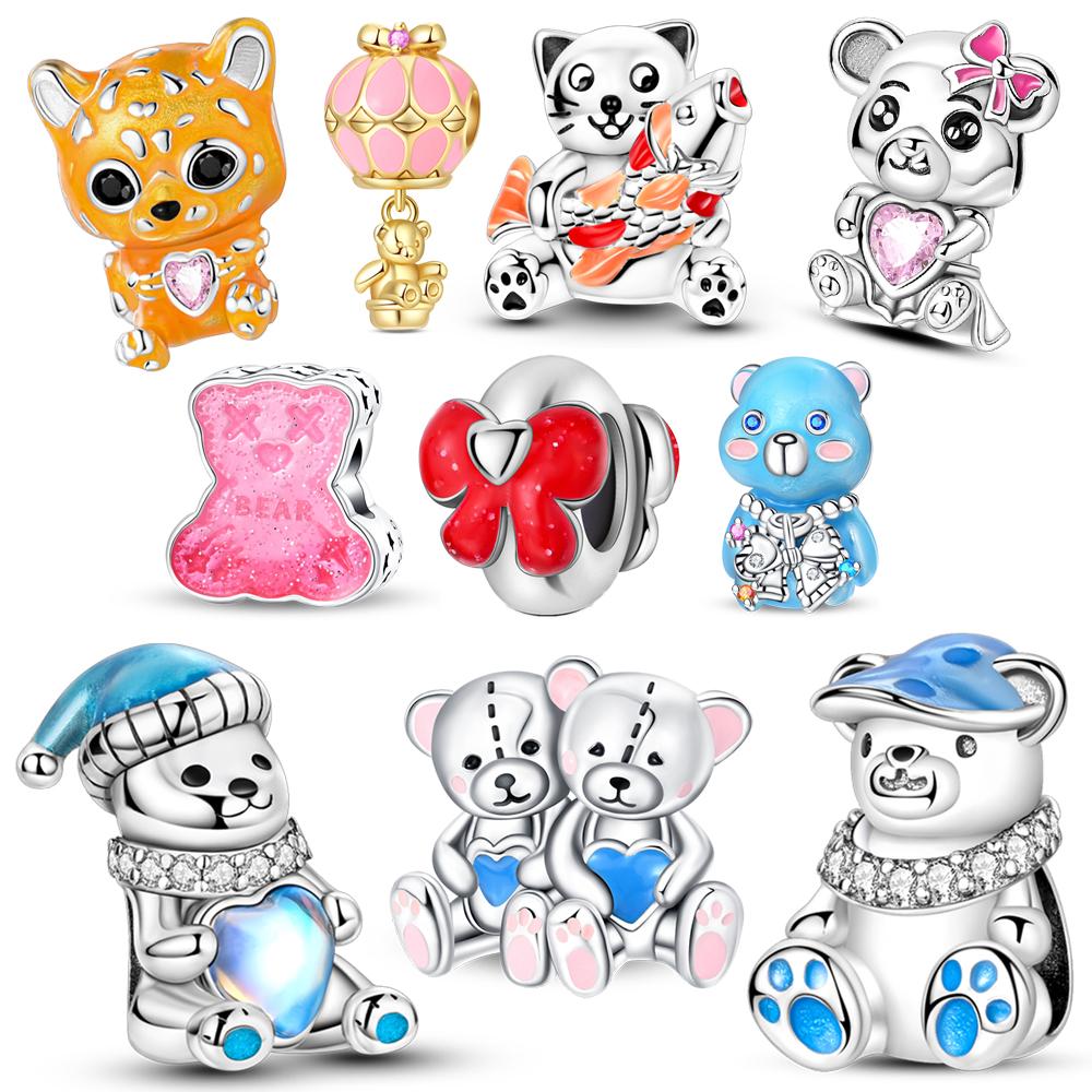 Lovely Copper Colorful Heart And Hat Wearing Bear&Golden And Blue Baby Bear&Bear Holding Fish Charm