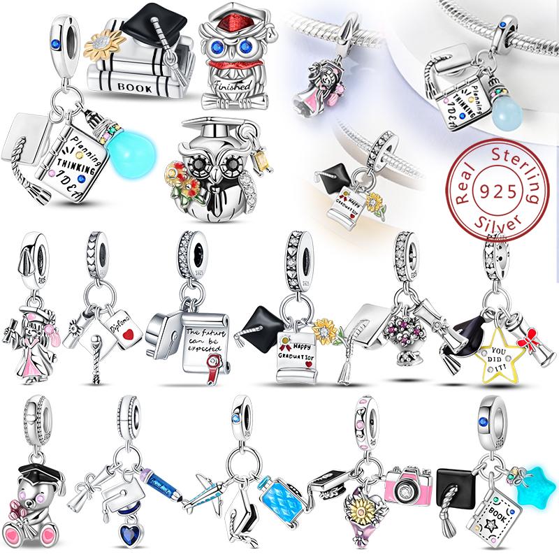 Copper Color Graduation Certificate Bachelor'S Hat Graduation Series Charms Beads Fit Pan Original Bracelets Diy Jewelry