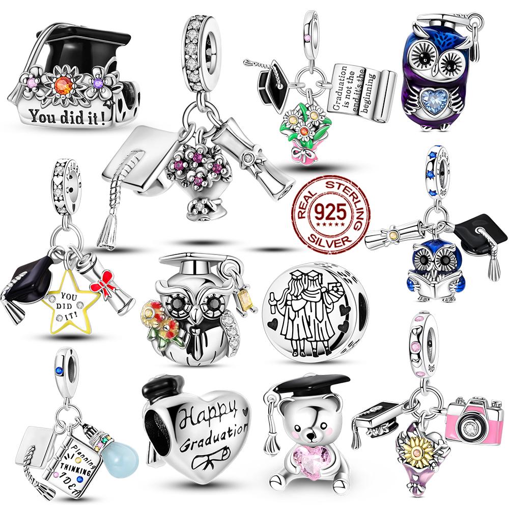 Happy Graduate Charms Bead Copper Bachelor Cap Dangle Fit Original Bangle Bracelet Diy Jewelry Graduation Ceremony