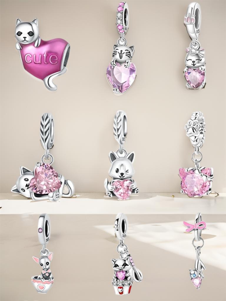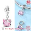 Anniversary Charms Copper Pink Cat Love Heart Beads Fit Original Bracelets Beads Charms Jewelry Making Fine Jewelry Gift