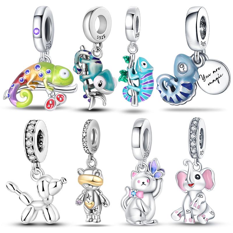 Copper Chameleon Cat And Dog Animal Pendant Fit Pandach Diy Bracelets Charm Beads Anniversary Birthday Gifts Fine Jewelry
