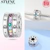 Exquisite Copper Colored Zircon Paving Star Moon Clip Charm Spacer Beads For Women'S Original Bracelet Jewelry Gift