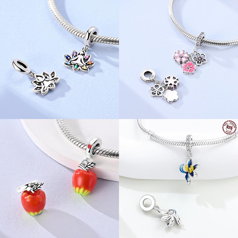 Original Charms Copper Pink Cherry Blossom And Blue Orchid Pendant Beads Fit Bracelet Women Jewelry Delicate Acessory Diy Gift
