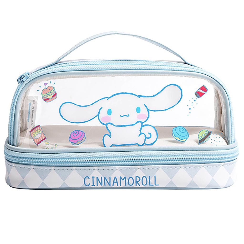 Large Capacity Transparent Double-layer Portable Stationery Box Cartoon Storage Pen Bag