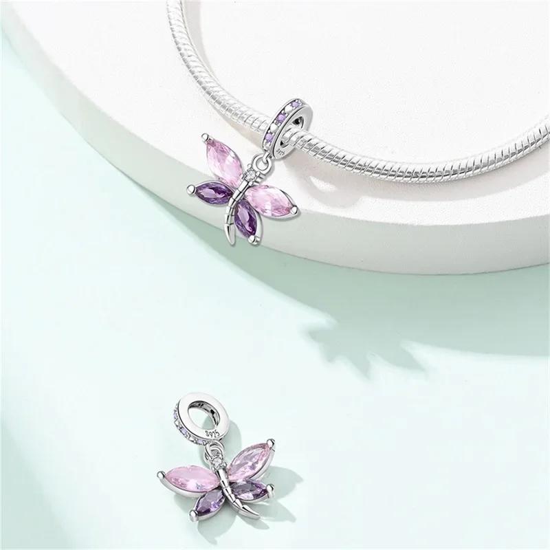Springtime Copper Gem Butterfly Dragonfly Flowers Charms Pendant Fit Pandach Original Bracelets Diy Little Fresh Jewelry