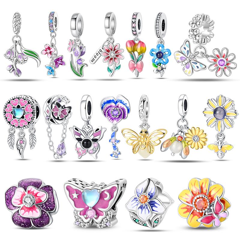 100% Copper Beautiful Spring Flowers Butterfly Firefly Charms Beads Fit Original Bracelets Diy Jewelry
