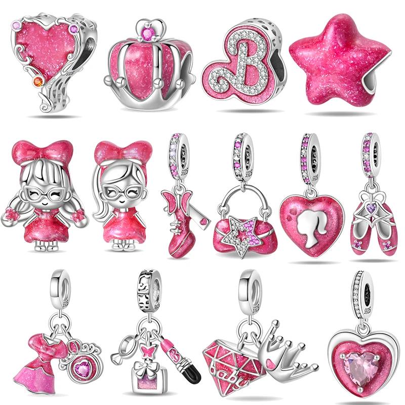 100% Copper Fashion Pink Princess Skirt Bag Lipstick Charms Beads Fit Original Bracelets Diy Jewelry Gifts