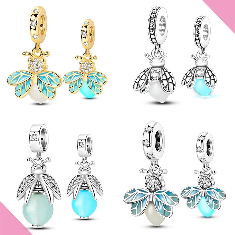 Copper Glow-In-The-Dark Firefly Bee Charm Pendant Fit Original Charms Bracelet Beads For Women Diy Fine Jewelry Gifts