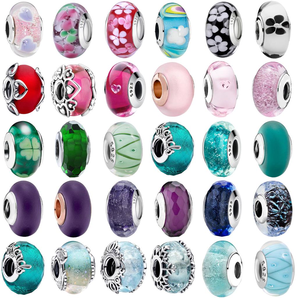 Copper Pink Flower Murano Glass Beads Charm Fit Original Bracelet Necklace Faceted Murano Diy Women Luxury Jewelry