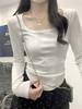 Irregular Curved Hem Long-sleeved Bottoming Shirt Women's Spring Waist Pinch Pleated Shoulder T-shirt Pure Desire Style Top