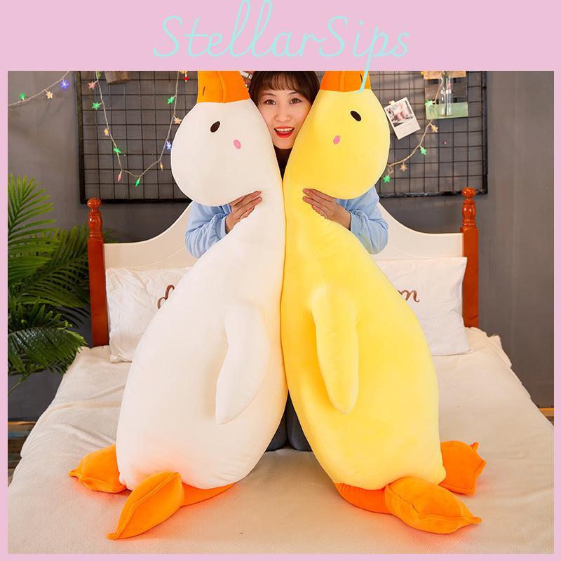 This charming plush toy, designed in the shape of an adorable cartoon goose, is perfect for all ages and makes an ideal gift for special occasions like Valentines Day or any moment that calls for a heartwarming surprise.Crafted with love from high-quality down cotton and featuring a four-way stretch plush fabric, our goose pillow is exceptionally soft and huggable.