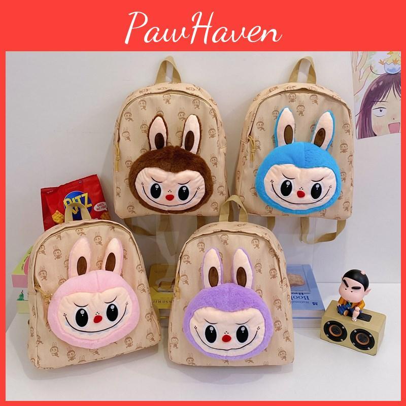 Cartoon Plush Backpack With Canvas Material And Adjustable Straps For Daily Use