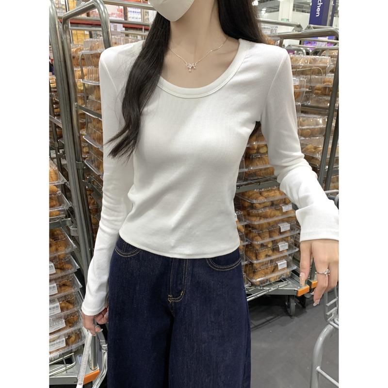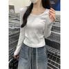 Early Spring Basic White Shirt Women's Bottoming Shirt Simple Front Shoulder Spice Girl Style Slim-fitting Long-sleeved Inner Top