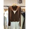 Spring Semi-zipper Contrasting Fake Two-piece Shirt Women's Top Waist Pinch Pleated Long-sleeved Retro Bottoming Shirt