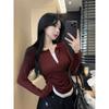 Spring Niche Waist Pleated Half Zipper Fake Two-piece Top Women's Long-sleeved Shirt Retro Bottoming Shirt