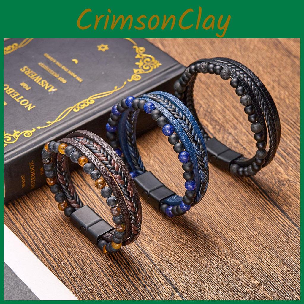 Geometric Style Mens Weaving Leather Wristband With Bead Design For Fashion And Travel