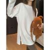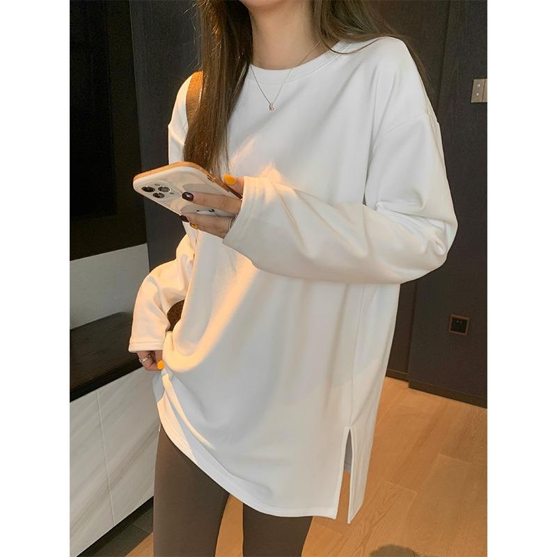Split Hem Loose White Shirt Top Women's Spring Autumn and Winter German Velvet Inner with Long Sleeves Simple Basic Bottoming Shirt