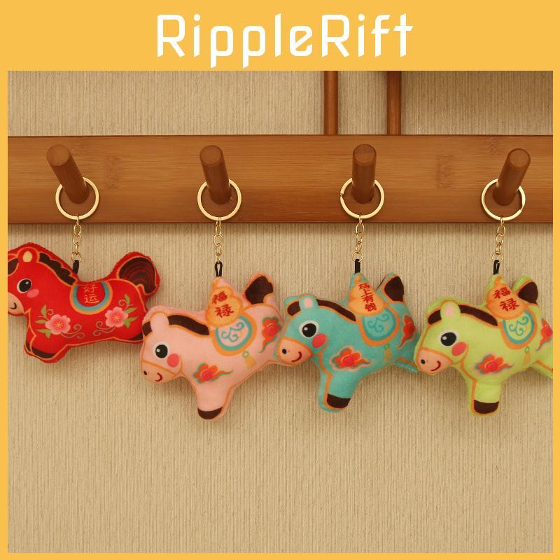 This plush horse ornament features a colorful cloud pattern, crafted with soft short-pile plush and filled with durable PP cotton. Its vibrant colors include pink, red, blue, and green, adding a lively touch. Ideal for decorating bags or as a thoughtful gift, it offers easy maintenance with occasional surface cleaning.