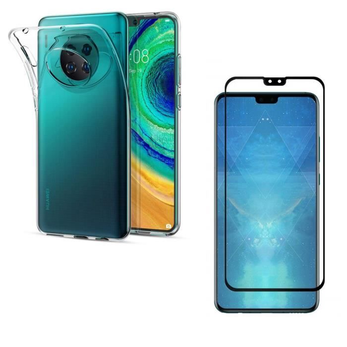 Coque pour Huawei MATE 30 + Verre Trempe Bord Noir - Protection Silicone Souple Mince Film Vitre Protection Ecran Phonillico®