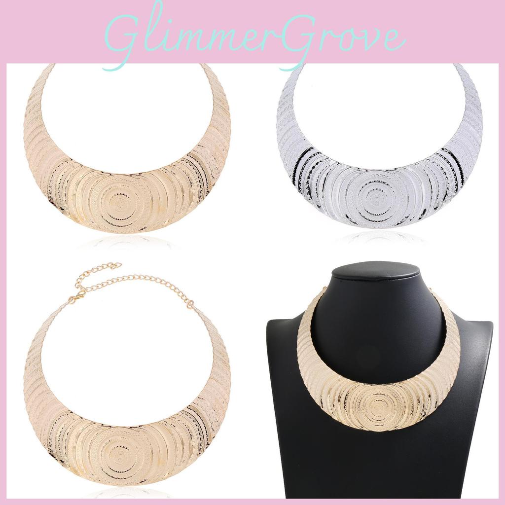 Oversized Metal Collar Necklace With Electroplating For Casual And Formal Use
