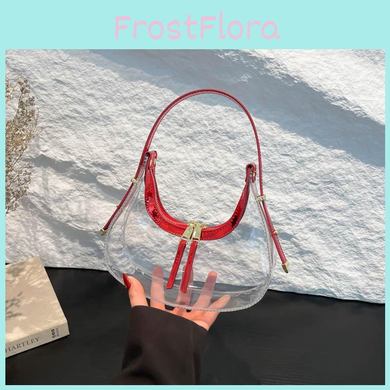 Transparent Handbag Women Summer Fashion Crescent Bag Zipper Closure Travel Bags