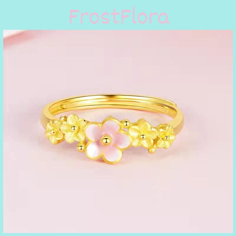 Unique Adjustable Copper Gold Plated Ring With Peach Blossom Motif For Womens Fashion