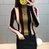 2025 Autumn Winter New Slim Tight Knitted Top Half-high Collar Vertical Striped Base Sweater for Women