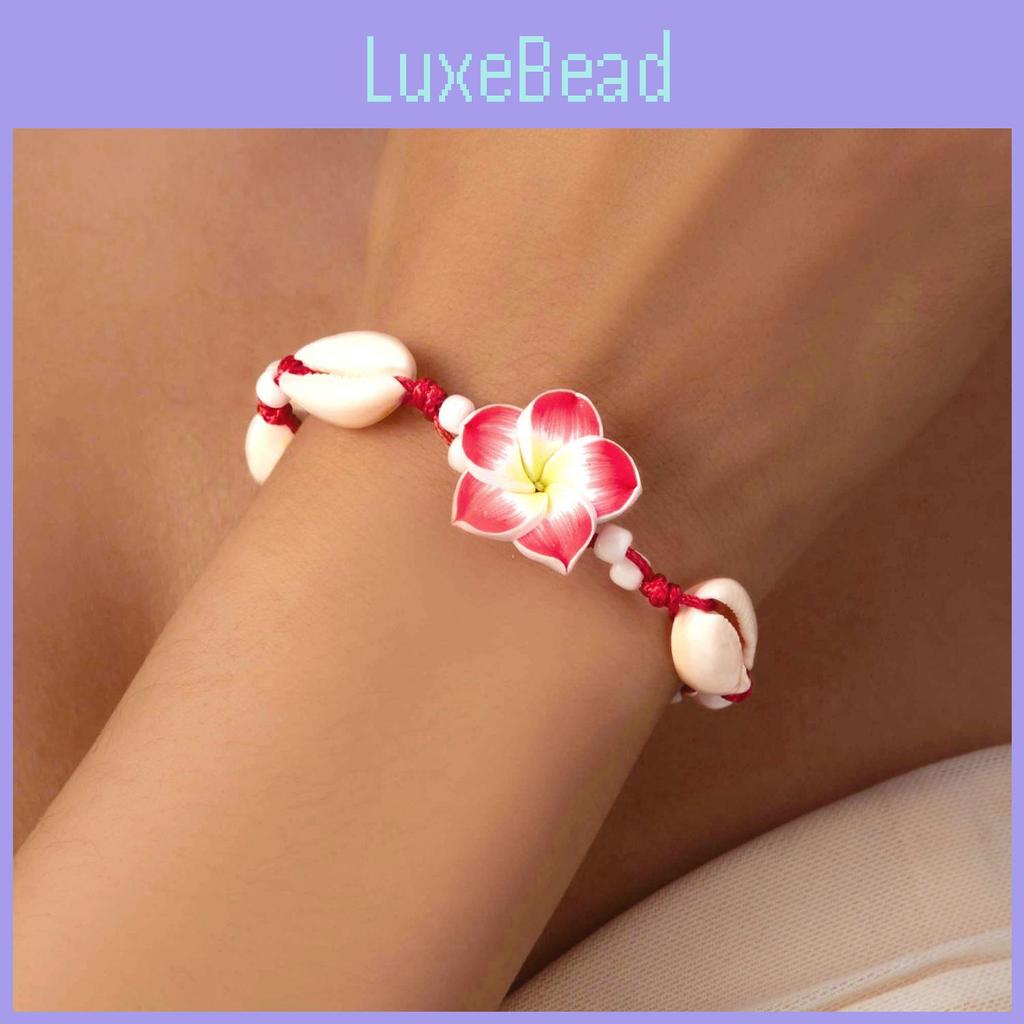 Soft Clay Flower Shell Bracelet With Adjustable Cord For Summer Beach Vacation Jewelry