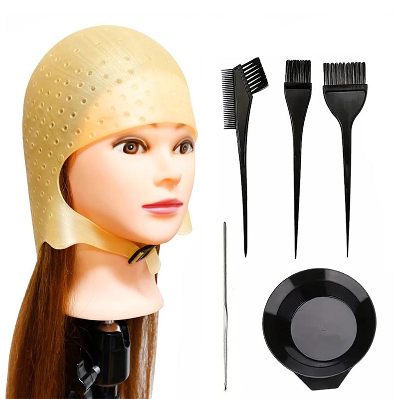 1set Professional Hair Coloring Kit Resuable Silicone Cap with Needle Hook Mixed Bowl Stirring Brush Salon Hair Beauty Tools