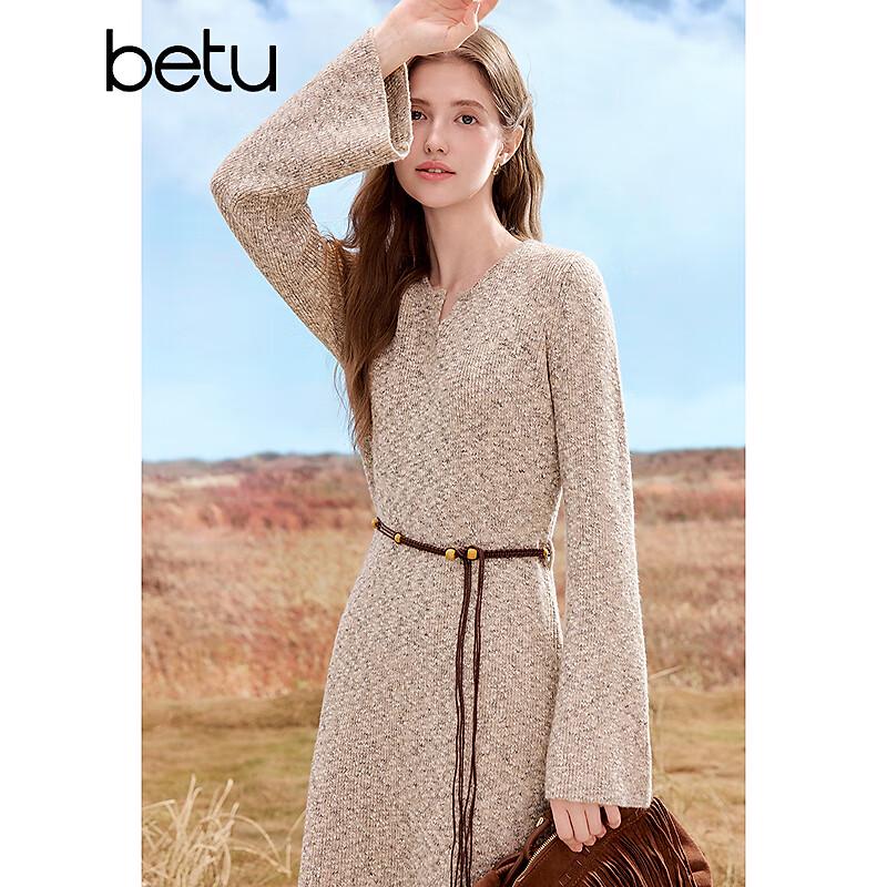 Betu Women's V-Neck Flared Sleeve A-Line Knit Midi Dress