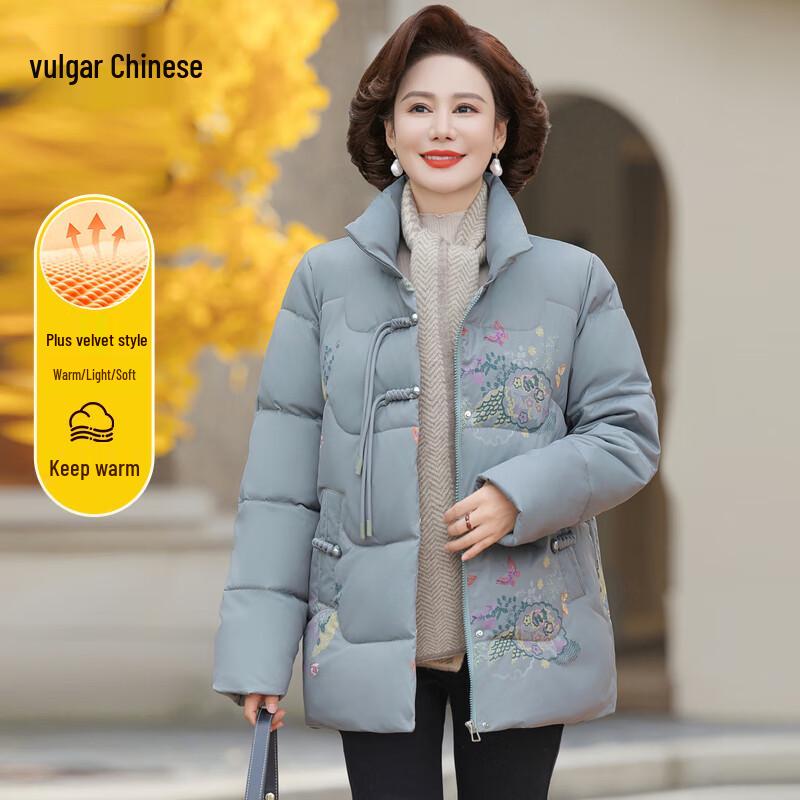 New Chinese Style Velvet-Lined Padded Winter Jacket for Women