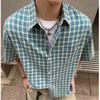 Men's Summer Loose Short-sleeved Casual Shirt Retro Plaid Shirt